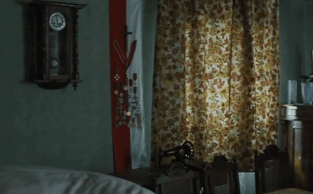 Pierwsza scena filmu zaczyna się od ukazania sypialni seniorów rodu – kamera stopniowo ukazuje stare, duże wiekowe i masywne meble, nad maszyną do szycia na polskiej fladze są przyczepione liczne odznaczenia Karola, a nad nimi znajduje się krzyż. Na meblach widać również liczne kryształy – symbol epoki PRL. Główny bohater budzi się, patrzy przez okno na otoczenie, gdzie znajduje się kopalnia, wita się z synową w kuchni i wychodzi na obchód gospodarstwa. Spogląda on z niezadowoleniem na nowe bloki z wielkiej płyty i trwającą budowę, która zastępuje powoli starą zabudowę jednorodzinną.