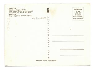 Pocztówka przedstawia widok z Kopca Kraka w Krakowie. Została wydana w roku 1964.